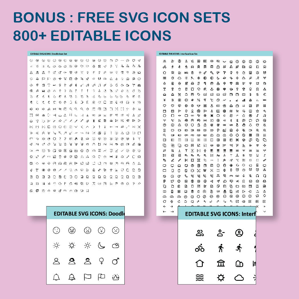 - Bonus: 800+ public domain (CC0) customizable SVG icons